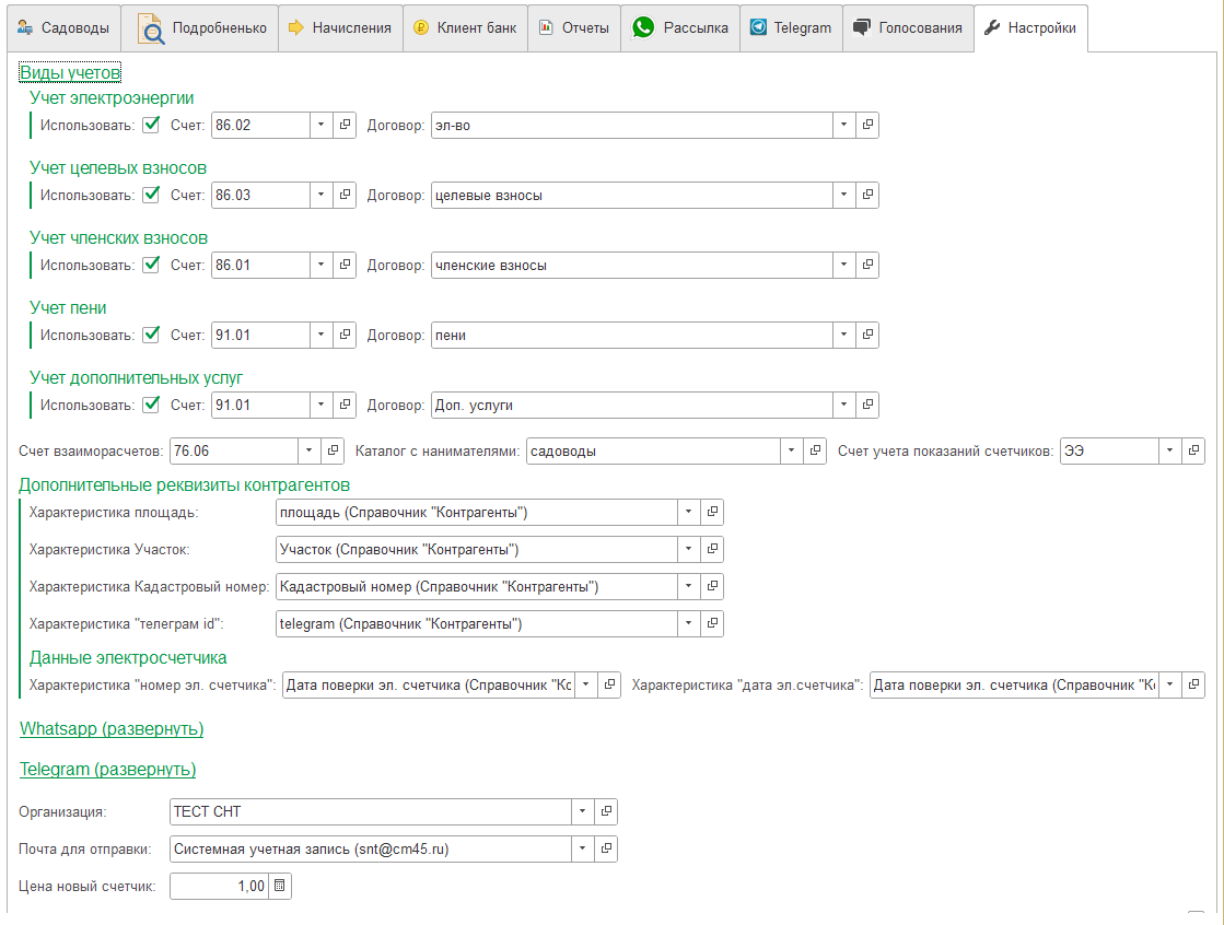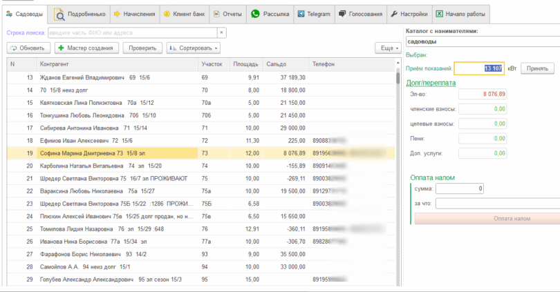 1С:Яблоня позволяет создать автоматизировать создание массовых начислений садоводам.